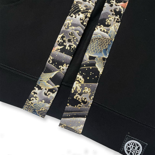 Noshi and Cranes on Black Happi Hoodie (Instock)