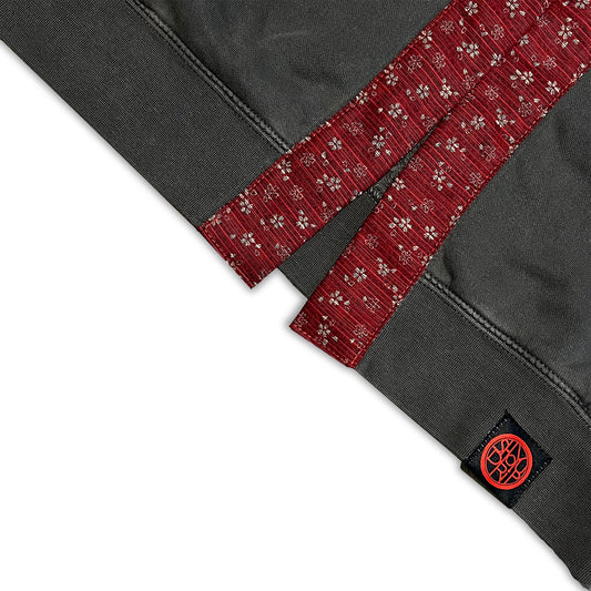 Red Sakura on Charcoal Mid-Weight Happi Hoodie (Instock)