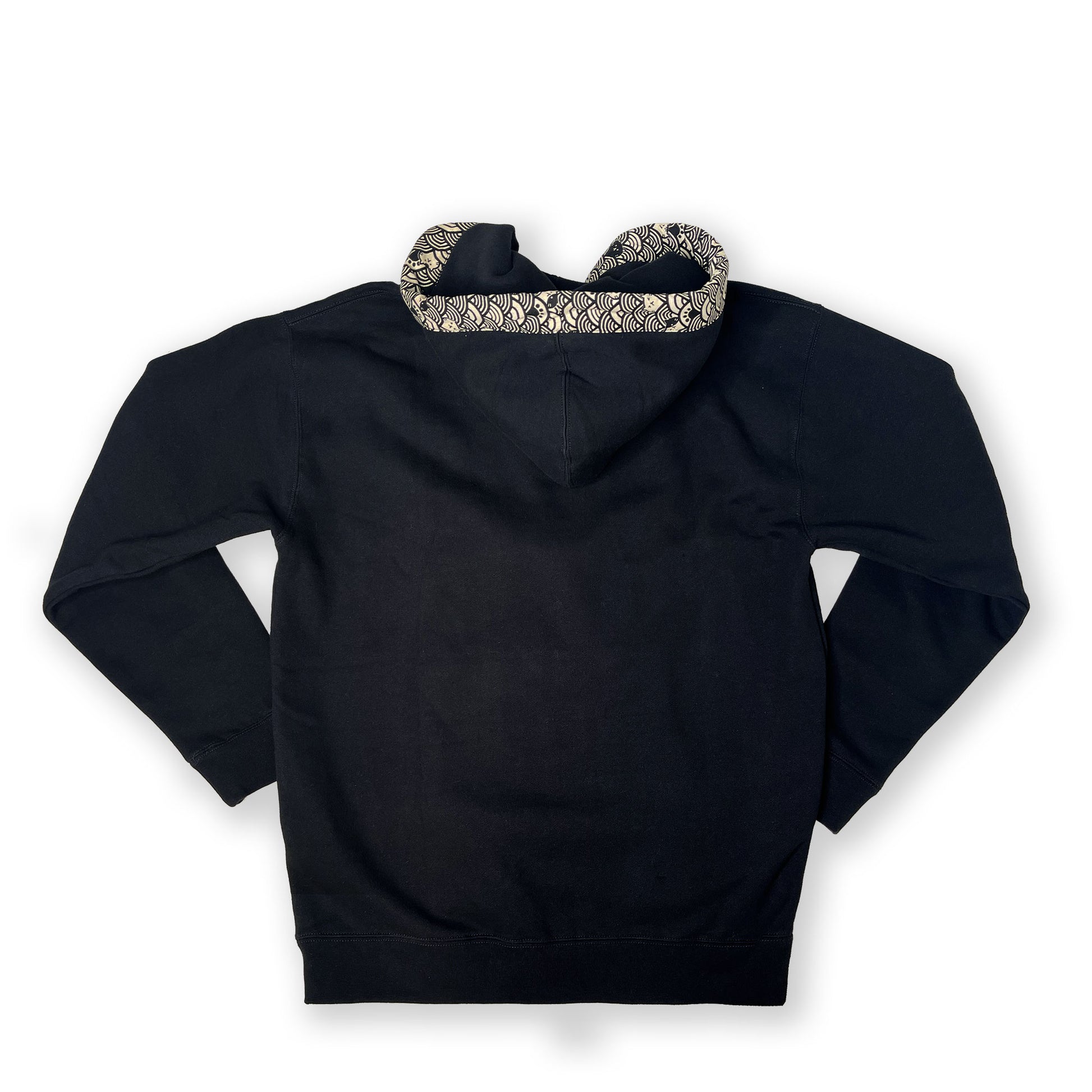 Cats play hide and seek in this traditional Japanese Seigaiha Wave pattern. Cozy, soft, comfortable and warm, you'll love how the this Happi Hoodie feels when you slip it on.