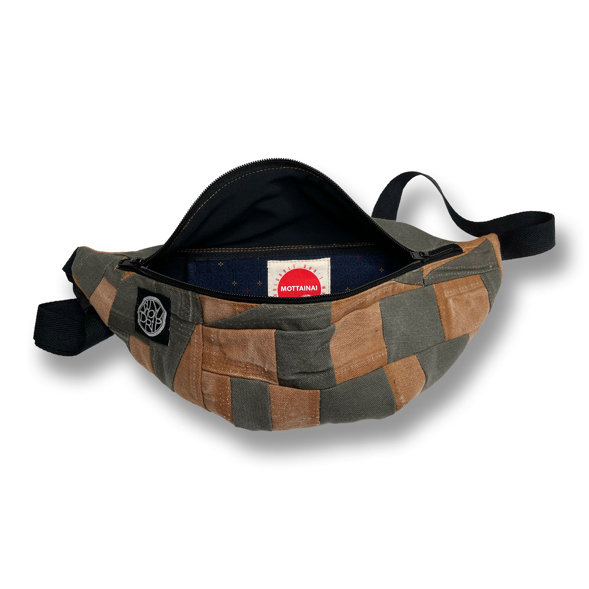 This One-of-a-kind Fanny Pack was pieced together from pieces of two pairs of vintage Carharrt work pants. It has a buckle and slider to adjust the length and can be worn around the waist or as a crossbody bag. The easy colors and urban style of this piece will have you reaching for it again and again.