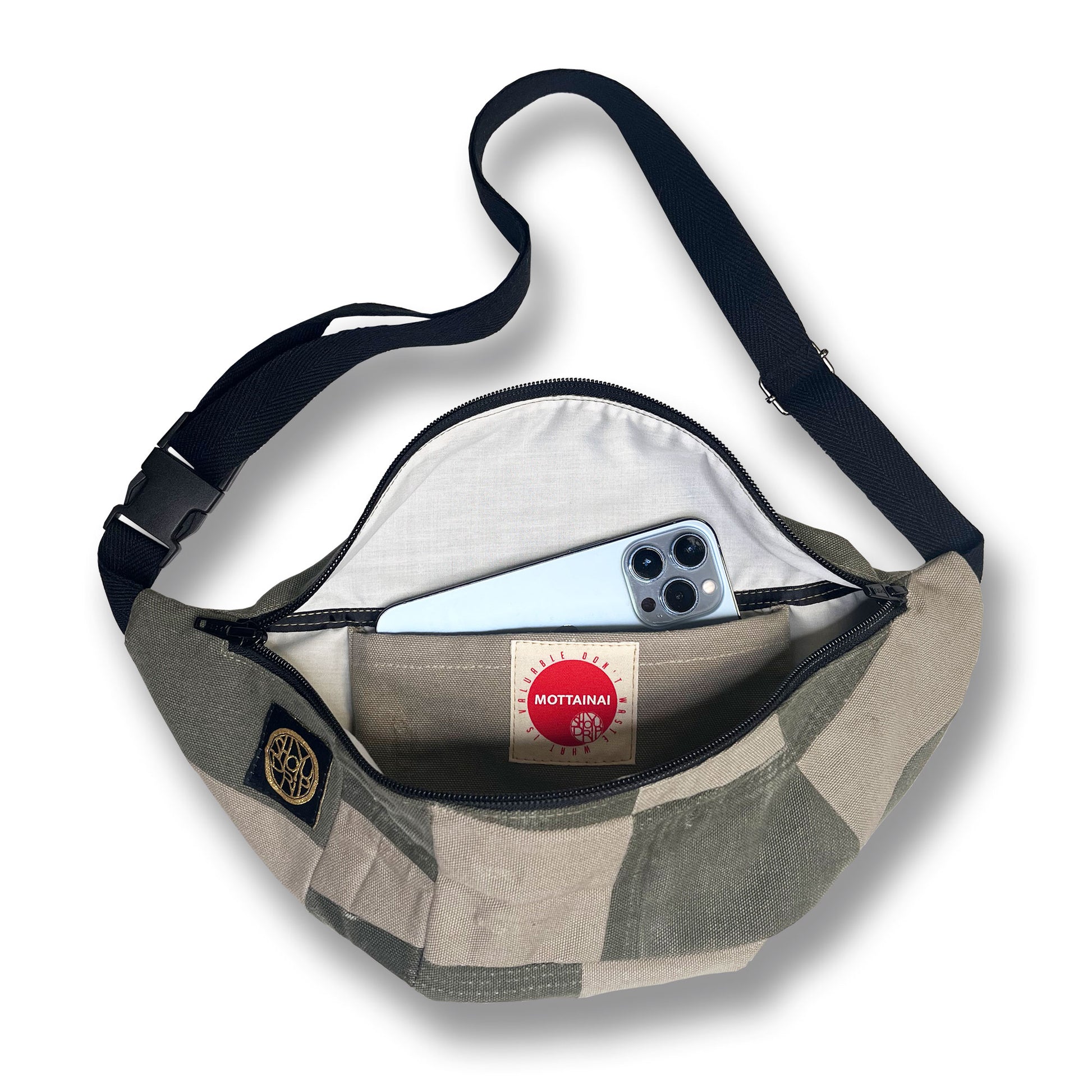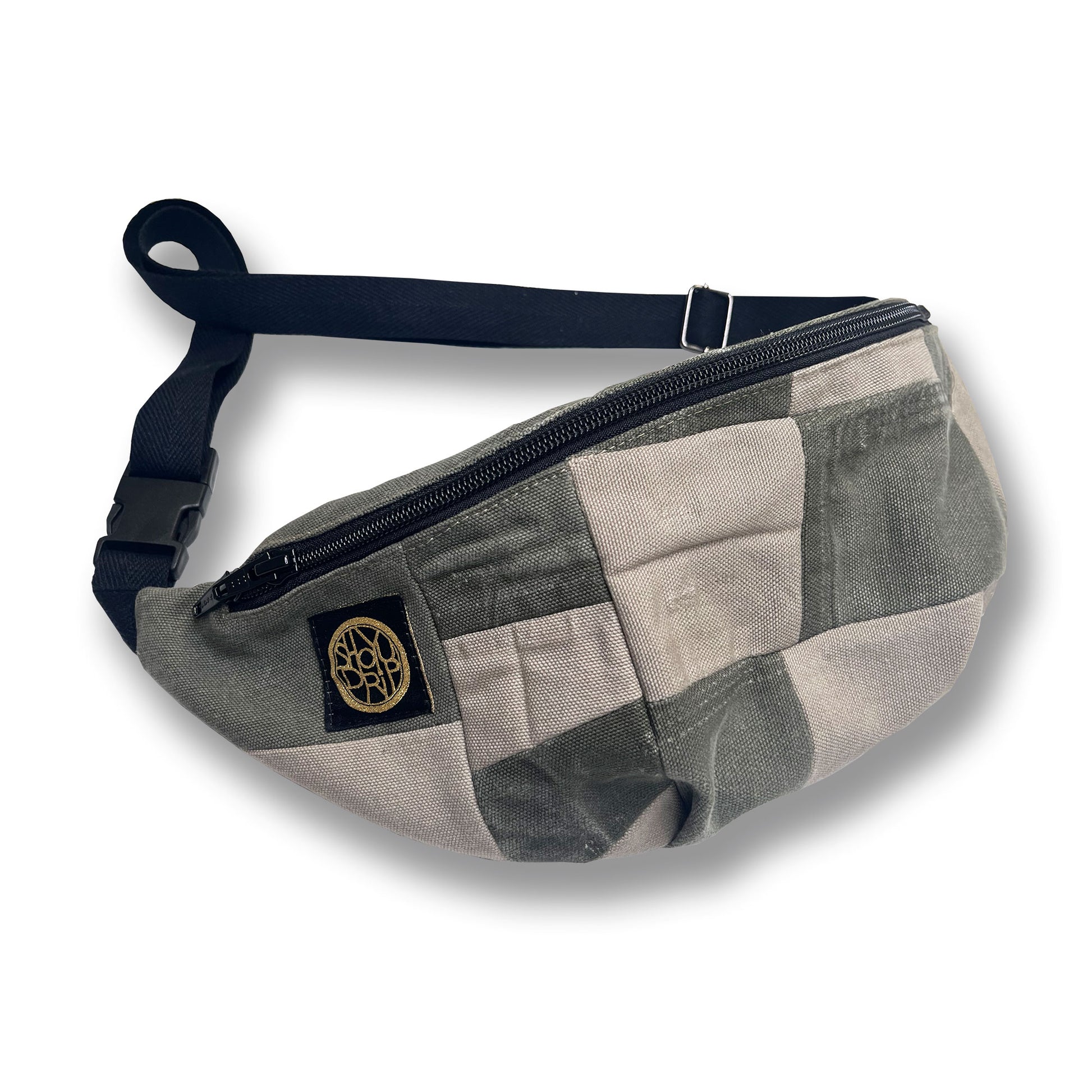 This one-of-a-kind handcrafted piece can be worn as a crossbody back or fanny pack. It was pieced together from pieces of two pairs of vintage Carharrt work pants. It has a plastic buckle and metal slider to adjust the length. The easy colors and urban style of this piece will have you reaching for it again and again.