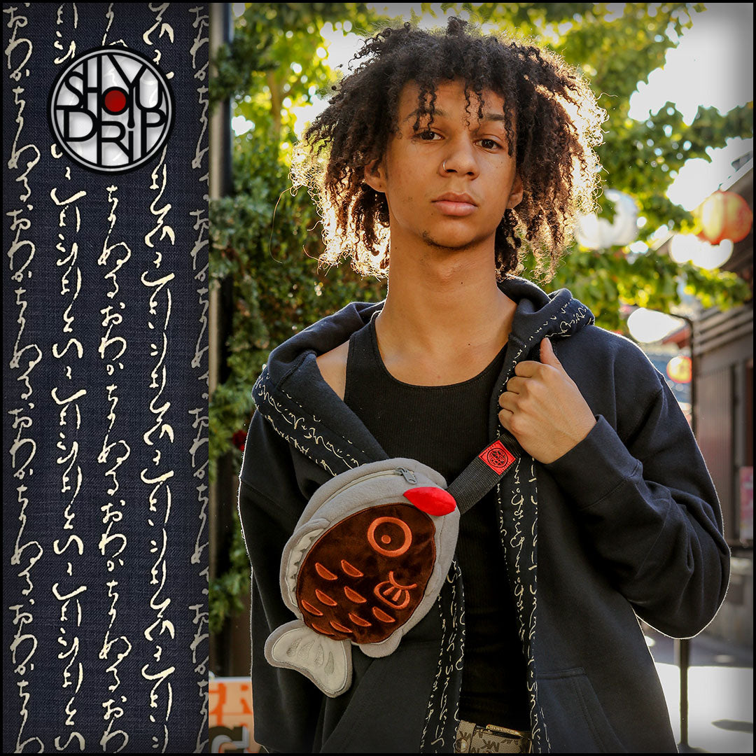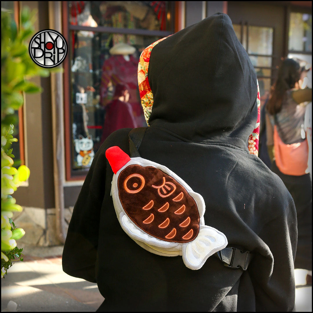 Inspired by the adorable little plastic fish filled with soy sauce called a "Lunch Charm". They are often included in bento boxes in Japan and got shortened to Luncharm because... have you ever tried saying Lunch Charm? Our bag is velvety, like a plushy with embroidered details. As soft as it is cute!