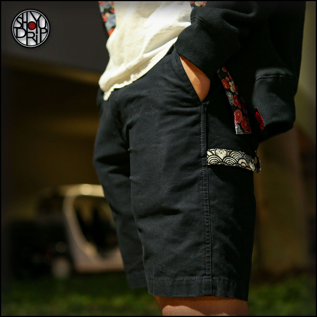 These comfy black Shigoto work shorts feature our Koi Wave fabric, imported from Japan, for a just a dash of Japanese flavor. While Shigoto means, "work", in the classic sense we love that these shorts "work" with everything!