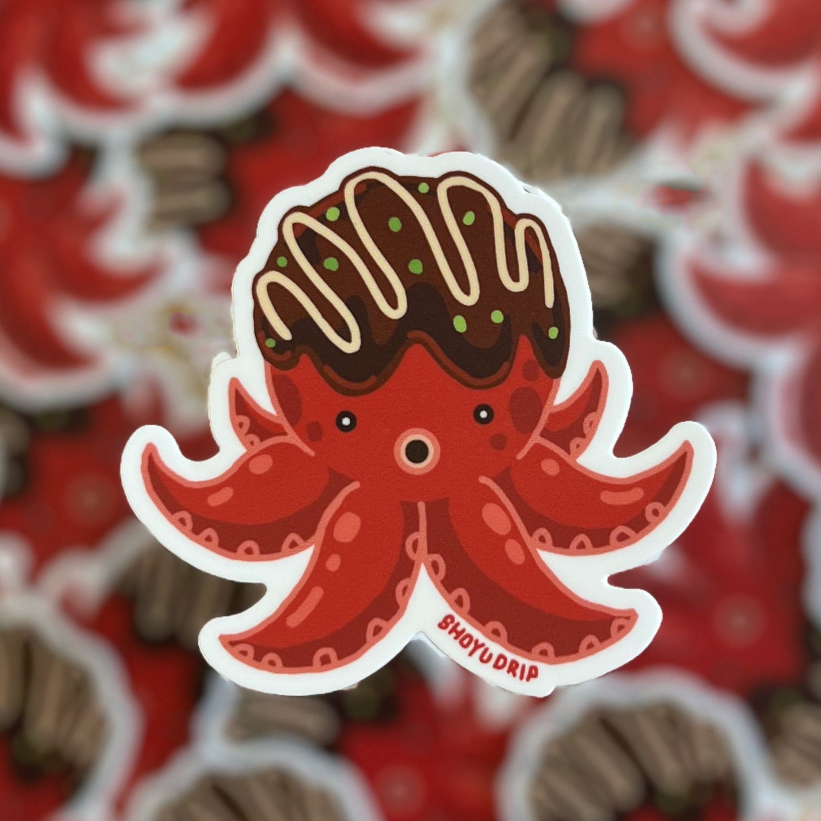 Steaming hot octopus balls, also referred to as Takoyaki, is exactly that. Our love for this common Japanese street food inspired this sticker.